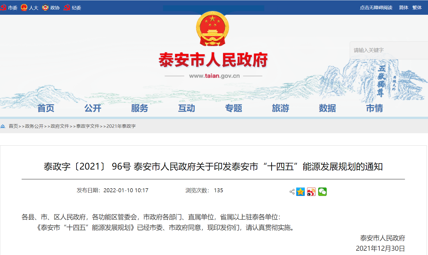 文章來源:地大熱能 發(fā)布作者:山東省泰安市人民政府 發(fā)表時間:2022-01-12 09:06:56瀏覽次數(shù):4803