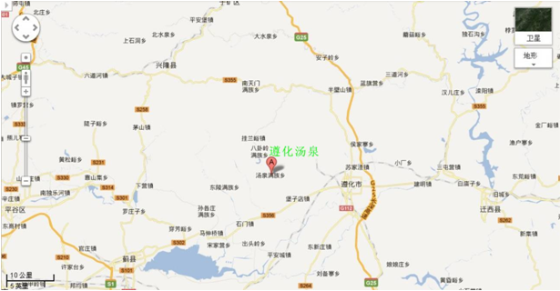 圖1 河北省遵化湯泉地理區(qū)域