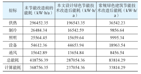 分別使用本文設計的被動式低能耗綠色建筑節(jié)能技術和基于專家評分的常規(guī)綠色節(jié)能技術改造,改造后能耗對比結(jié)果如表1所示。