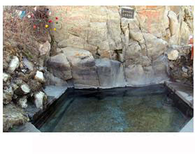位于雪巴村附近,沃卡宗遺址向北跨或一座小橋有一處溫泉,叫帕布,泉水一從巨石縫中流出來的,在泉眼前有一個(gè)近20平方米的水池,這是當(dāng)?shù)厝罕娮钕矏鄣囊惶帨厝磕甏合闹唬藗冊谶@里為家畜洗澡,洗去一冬在圈里染上的寄生蟲和身上的灰塵。帕布泉以東,覺瓊邦卡泉以西的一處溫泉叫邦嘎卡,泉水從草坪下流出,水溫在38度左右,這眼泉水邊常能見到戀愛中的青年來此洗澡,每當(dāng)夜幕降臨,他們雙雙對對,躺在泉中談情說愛……