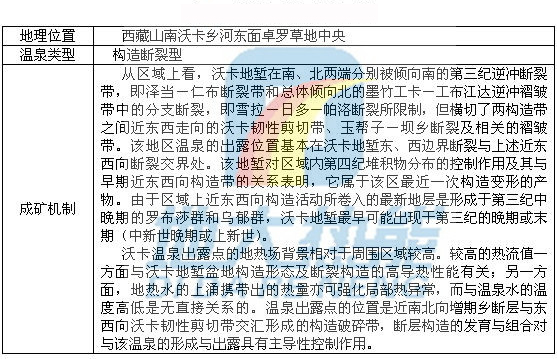 沃卡溫泉位于西藏山南地區(qū)桑日縣北東部。該縣地處岡底斯山脈南麓,雅魯藏布江中游河谷地帶。距拉薩230km,地理位置優(yōu)越,交通十分便利,總面積2638km2,總?cè)丝?6000,轄三鄉(xiāng)一鎮(zhèn),沃卡溫泉位于桑日縣北東部的沃卡鄉(xiāng)。該縣資源豐富,除地?zé)豳Y源外,還有極具開發(fā)價(jià)值的有銅礦、鐵礦等寶貴礦產(chǎn)。