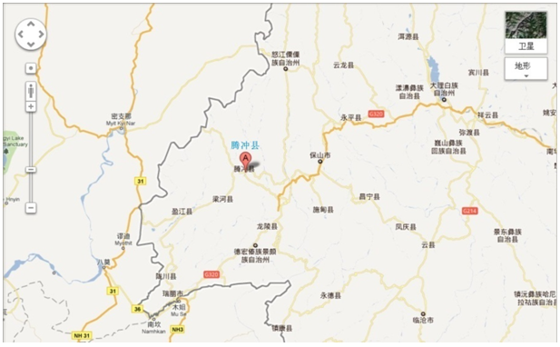 云南騰沖縣位于云南省西南部,西部與緬甸毗鄰,歷史上曾是古西南絲綢之路的要沖。地理座標為東經(jīng)98°29’,北緯25°1’。