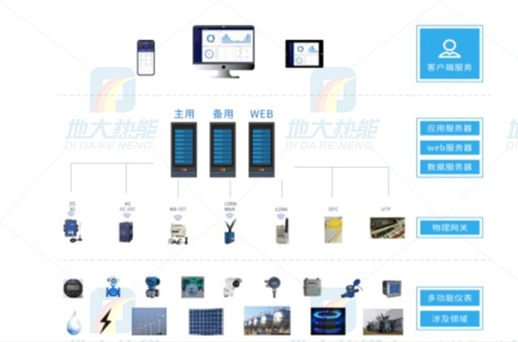 為了實現節能減排目 標,全面提高能源利用效率,豐富其科學管理中的技術內涵,高效率、高質量的完成好相應的管理工作,地大熱能不僅提供清潔能源的開發與利用還提供智慧能源管理,打造全方位的能耗監測、用能分析、能效評估、智慧能源服務系統!同時根據能源體系行業標準,實現綜合能源服務平臺,推進公共場所綜合智慧能源管理的數字化管理。